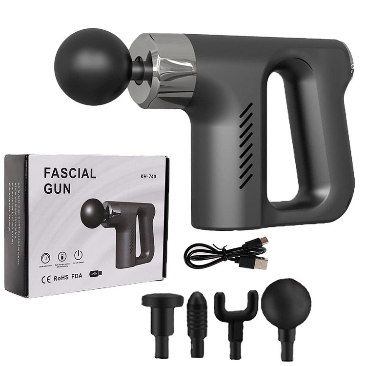 ماساژور fascial gun مدل KH-740 ماساژوری سبک و کم حجم برای هر زمان و هر مکان است. با این ماساژور میتوانید کمر خود را به راحتی ماساژ دهید.این ماساژور با وارد کردن ضربه های کوبه ای به عمق عضلات نفوذ کرده و با وارد کردن ضربه در عمق مفاصل اثر خاص خود را بر جای میگذارد. این ماساژور تفنگی شارژی با داشتن 4 سری قابل تعویض و قابل شستشو به راحتی کار با این محصول کمک بسیاری کرده است. ضمناً چون این دستگاه با باتری لیتیومی که داراست قابل شارژ است آن را با خود در سفر نیز میتوانید حمل کنید. کافیست کابل USB این محصول را که از نوع type c (تایپ سی) است را به کلگی گوشی خود وصل کنید تا پس از دو ساعت شارژ شود. سپس شما میتوانید از این محصول بدون نیاز به نزدیک بودن به برق و دردسر های کوتاهی سیم برق و نبود پریز در کنار تخت و یا مبل از آن استفاده ببرید.