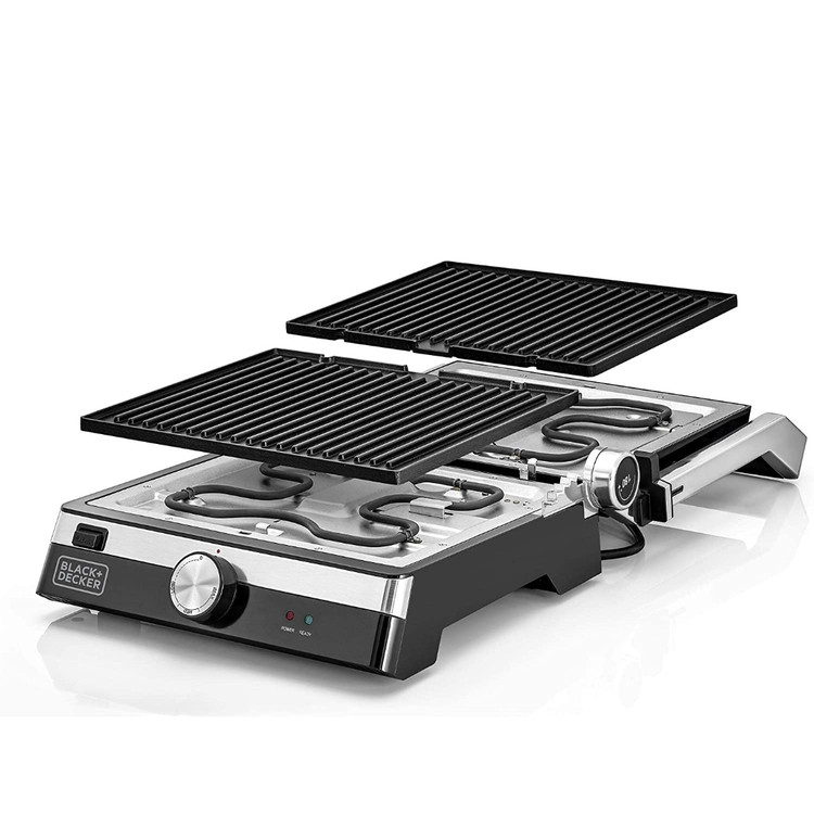گریل بلک اند دکر مدل BLACK and DECKER CG2000، با توان مصرفی 2000 وات مناسب برای طبخ استیک، مرغ، ماهی و سبزیجات است. پوشش نچسب صفحه پخت، لولای 180 درجه ای برای باز شدن درب و قابلیت تنظیم 5 سطح ارتفاع آن متناسب با پخت انواع غذاها، کنترل دما برای رسیدن به دمای مطلوب پخت کامل غذا، دستگیره پلاستیکی مقاوم در برابر حرارت، قفل ایمنی صفحه پخت، سینی جمع آوری روغن و جنس بدنه مرکب از استیل و پلاستیک از دیگر امکانات گریل بلک اند دکر مدل BLACK and DECKER CG2000 به شمار میآید