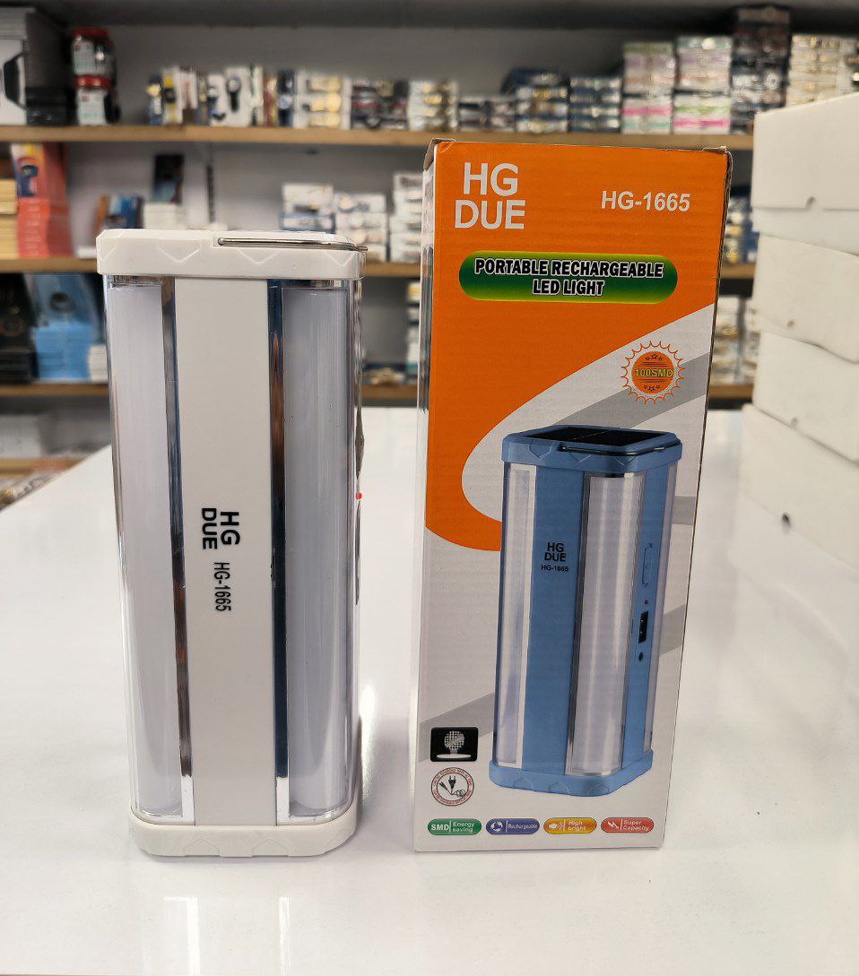 این مدل علاوه بر تامین روشنایی، با داشتن خروجی USB قابلیت استفاده به عنوان پاوربانک را دارد و میتواند گوشی موبایل یا سایر دستگاههای شارژی شما را در هر زمان در دسترس نگه دارد. مشخصات فنی چراغ HGDUE HG‑1665: