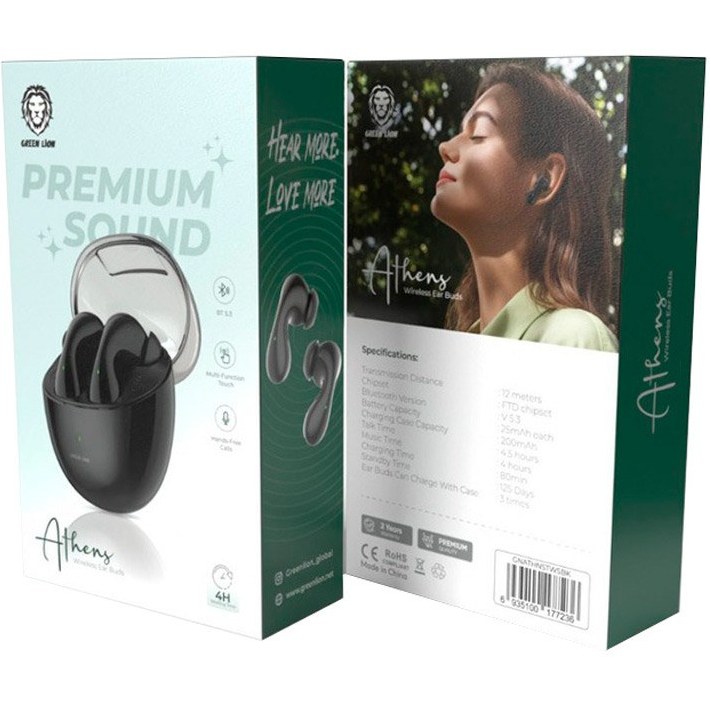 در کنار این ویژگی ها قابلیت مکالمه 4.5 ساعتی و گوش دادن به موسیقی تا 4 ساعت از دیگر امکانات آن است. هندزفری بلوتوثی Green Lion Athens Premium Sound مجهز به چیپ بلوتوث ورژن 5.3 هست تا بتوانید بدون تاخیر و با کیفیت بالا تا برد 12 متر از موسیقی و مکالمه با آن لذت ببرید.