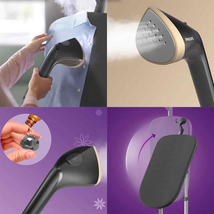 دارای سری مثلثی شکل به منظور دسترسی به زوایای مختلف لباس, دارای فناوری MyEssence جهت افزودن رایحه دلخواه به سری دستگاه, قابلیت نابودی 99.99% میکروارگانیسم ها با هر بار اتوکشی